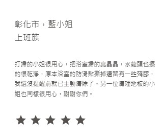 可潔家事,成立於台中,服務範圍主營台中、彰化及少部份台北地區。